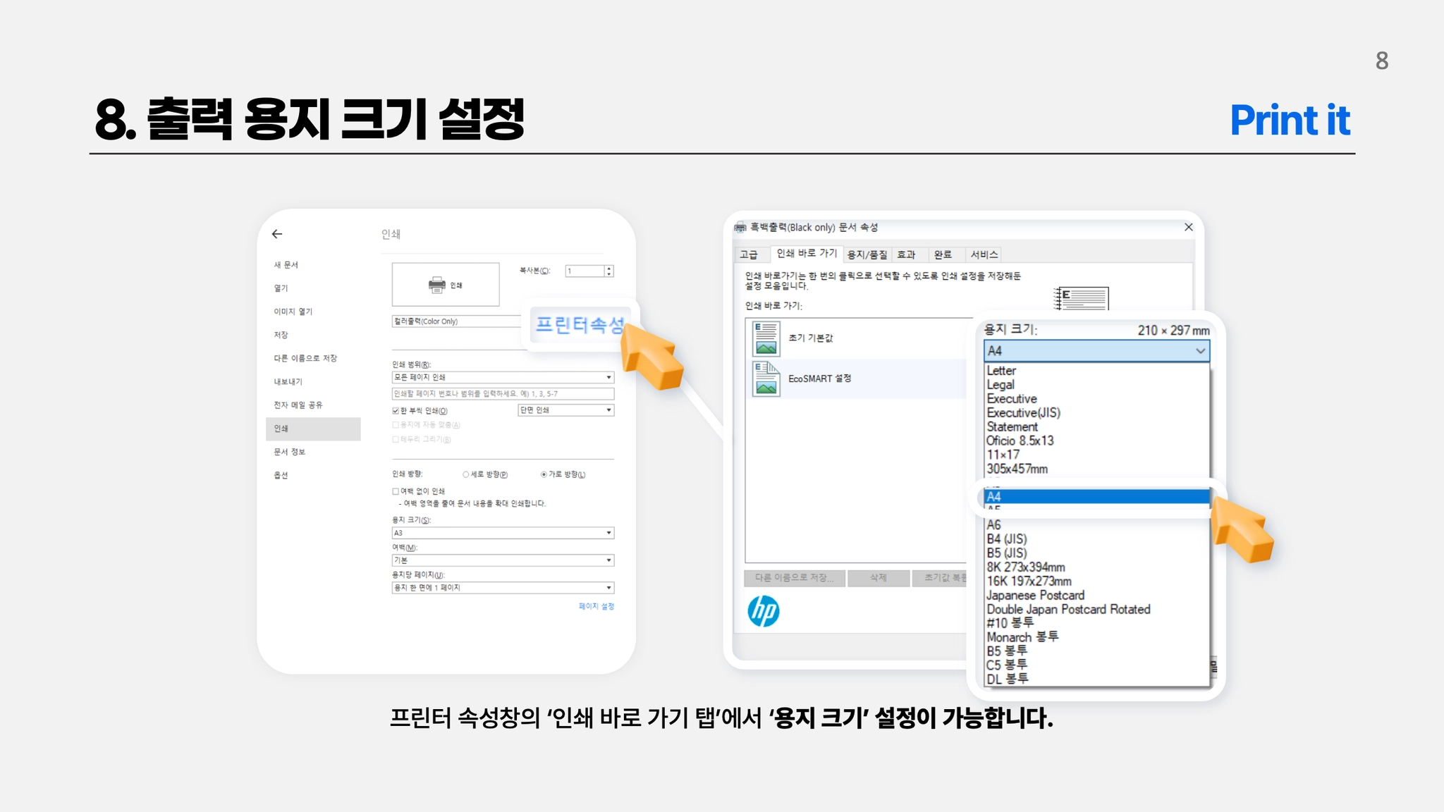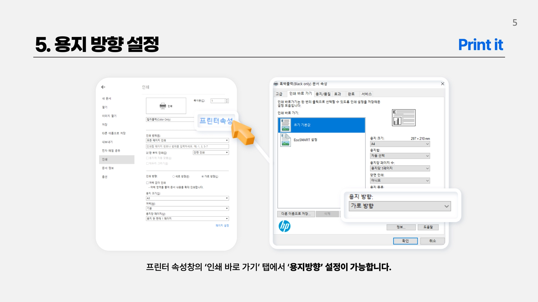 용지방향 설정방법