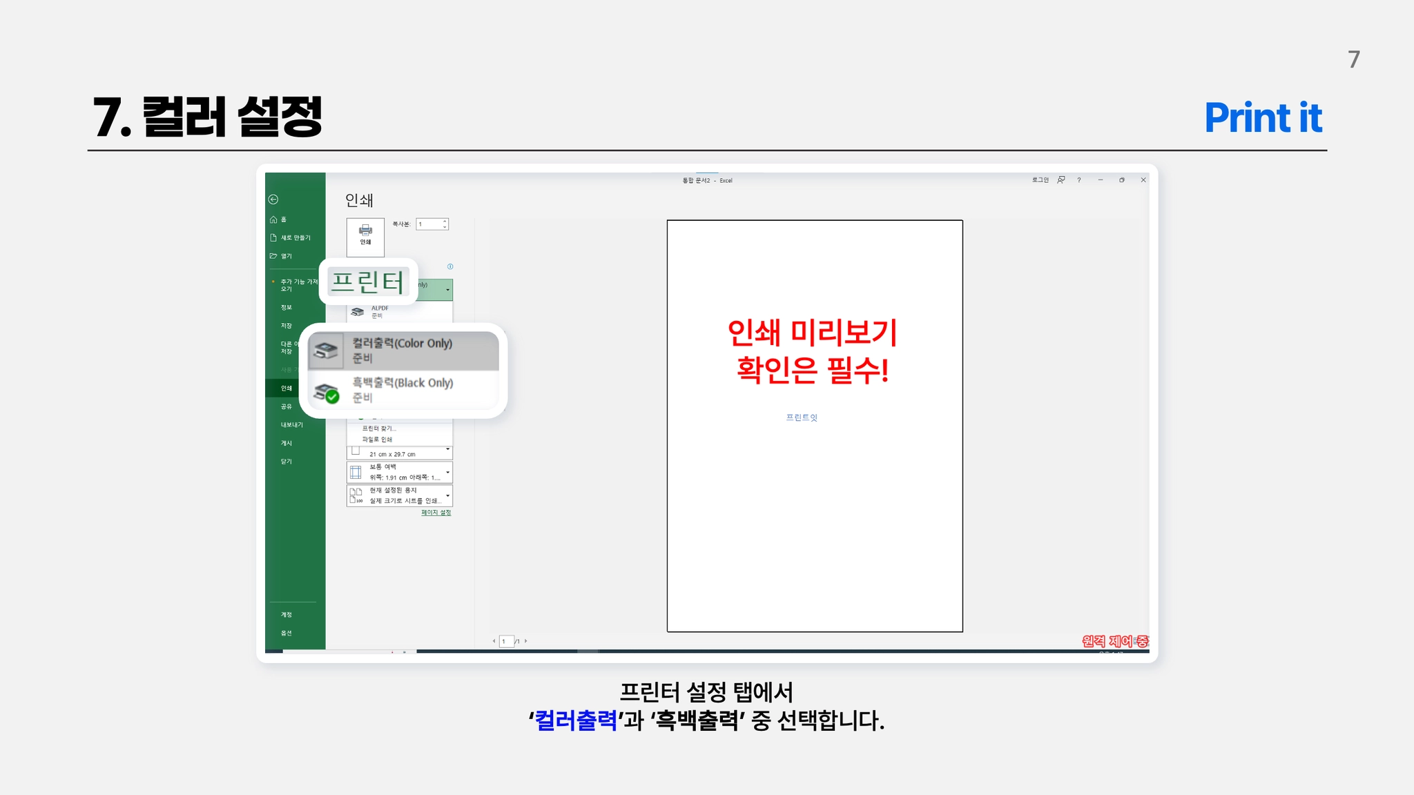 MS오피스 Excel 인쇄설정 방법