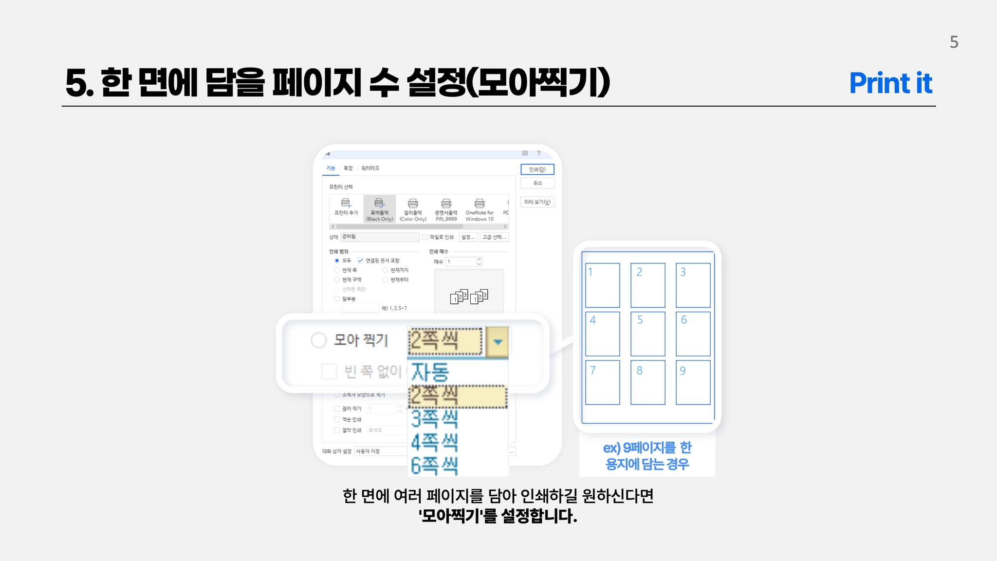 한 면에 담을 페이지 수 설정