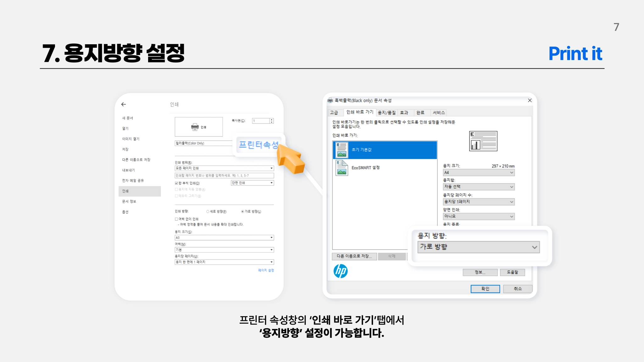 용지방향 설정방법