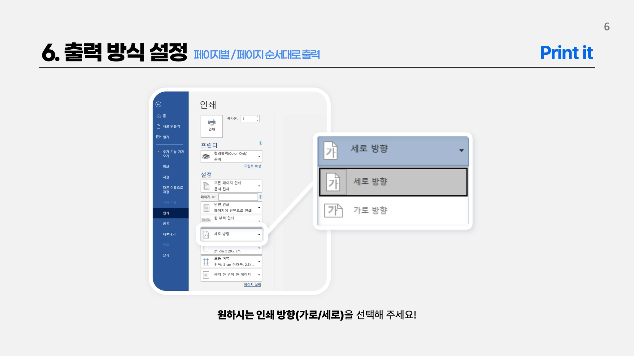 용지방향 설정방법