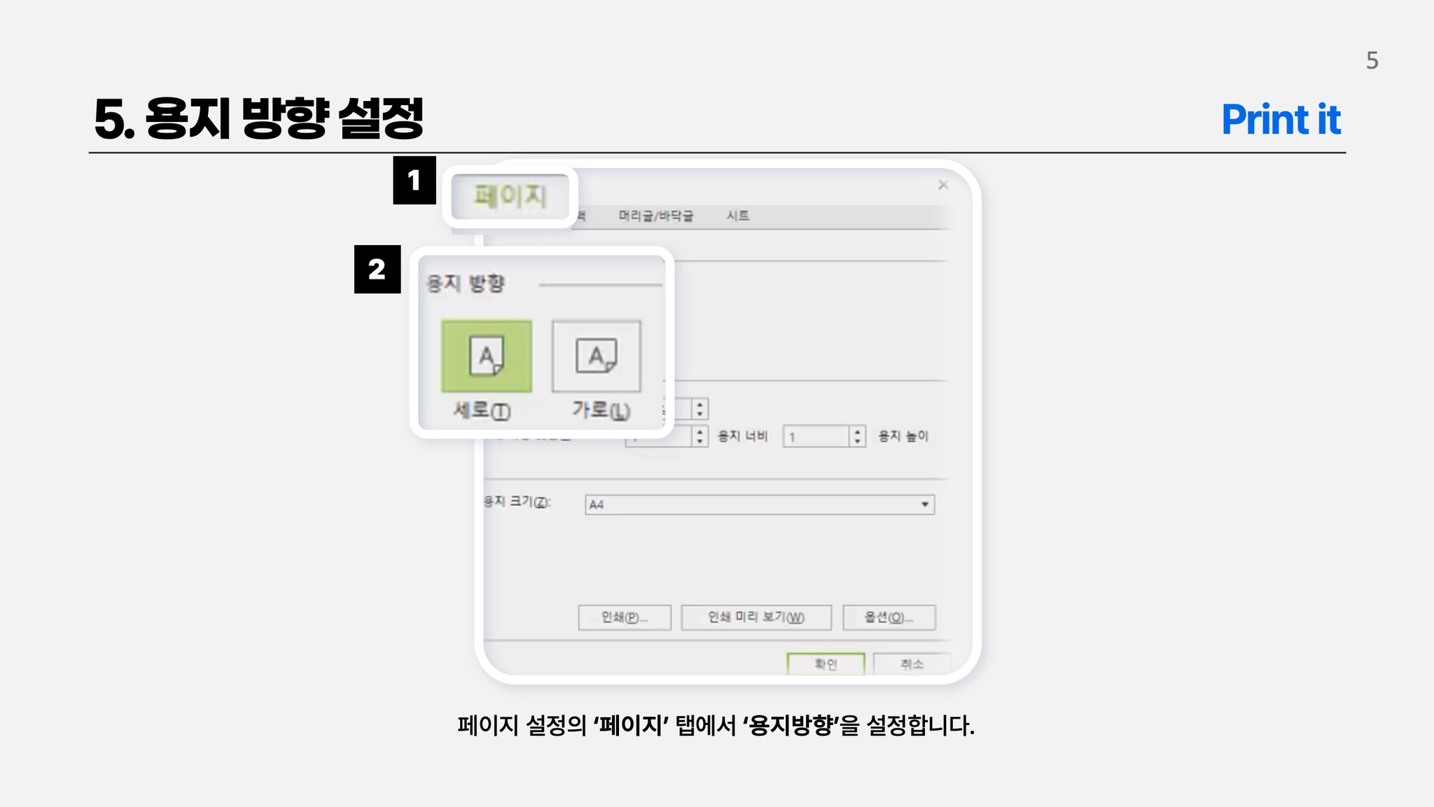 용지 방향 설정